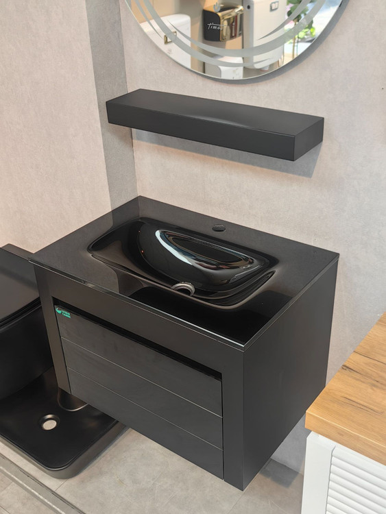 کابینت روشویی مشکی مات مدل 1043 با صفحه شیشهای توکار